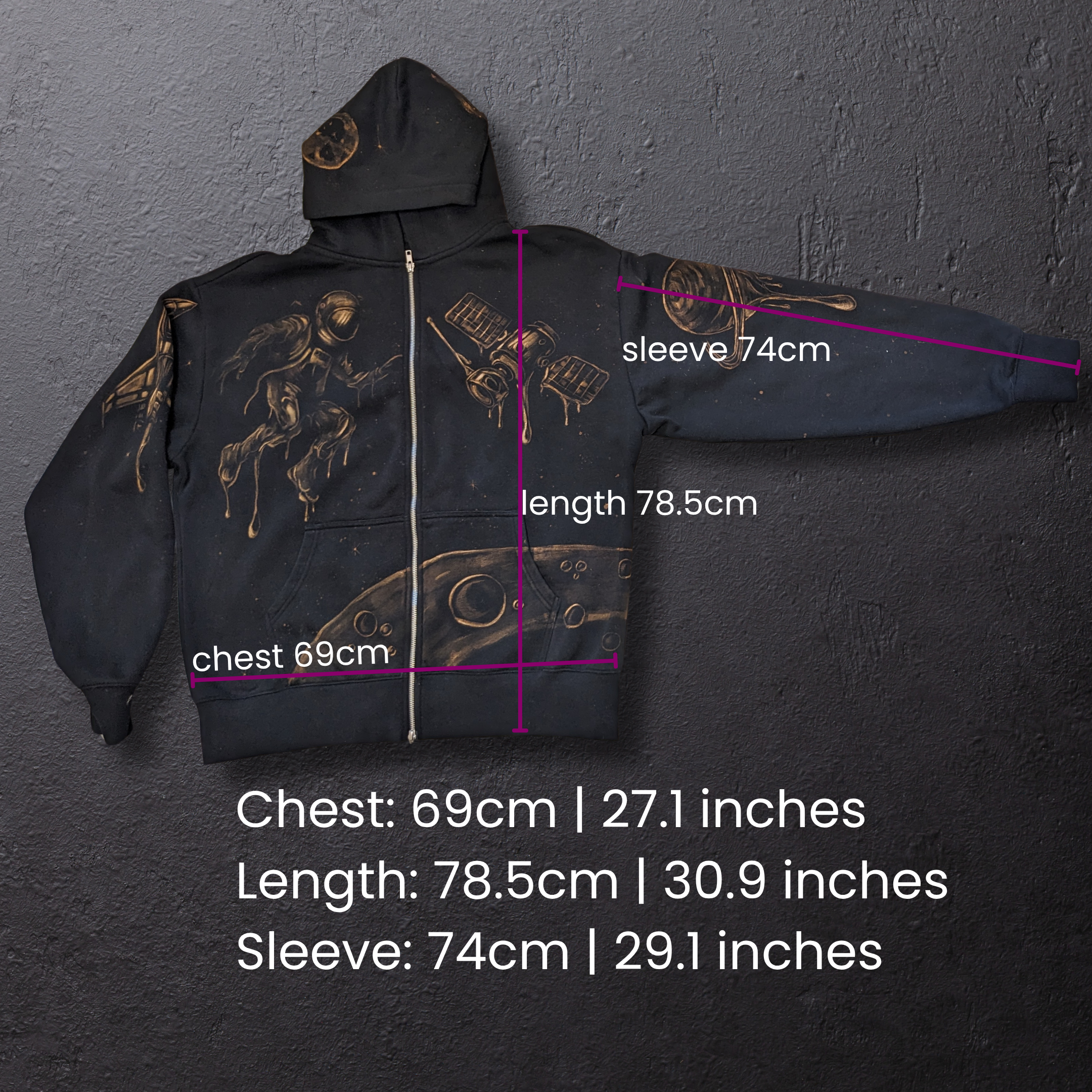 No guessing on sizing — match these measurements to a hoodie/sweater you already own and love:
